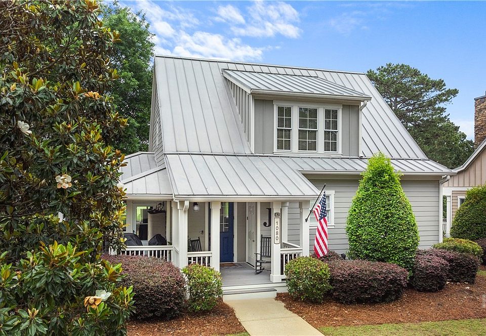Welcome to this charming 3-bedroom, 3.5-bathroom Landing cottage nestled in the heart of Reynolds Lake Oconee. This newly renovated home seamlessly blends charm with modern elegance, offering a "lock and leave" lifestyle for the discerning buyer. As you approach, you're greeted by a warm and inviting front porch, perfect for enjoying the serene surroundings. Step inside to discover a spacious main level featuring a cozy living room with a fireplace that opens up to a beautifully renovated kitchen. The kitchen is a chef's dream, boasting a huge island, stainless steel appliances, and a convenient wet bar. Expansive windows flood the space with natural light and offer breathtaking panoramic views of Hole #11 green and #12 fairway of the Bob Cupp golf course.