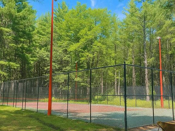 In-ground poolDecorative fireplaceTennis ball courtFront deckCovered deckSparkling poolFire pit