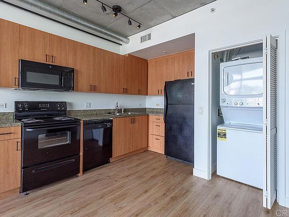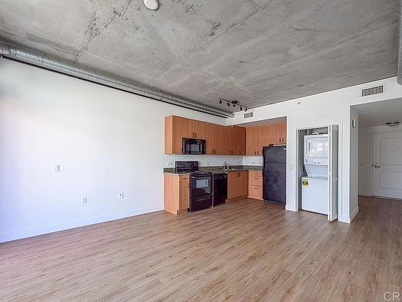 Welcome to Smart Corner and this bright and airy north facing studio. Enjoy abundant light in this open floor plan, new luxury vinyl plank flooring and new stacked washer/dryer. Enjoy forever views of the city and Balboa Park from your private balcony located on the 9th floor. One assigned garage space. Smart Corner is an all emcompassing hub of work, play, shop and live! It is conveniently located near 163 freeway, I-5, highway and 94, Petco Park, San Diego City College, has direct access to and is just blocks from the heart of downtown. Amenities include a roof top deck with the best views of downtown, spa and barbecue area; and a fully equipped fitness center on the 2nd floor. Building is pet friendly.