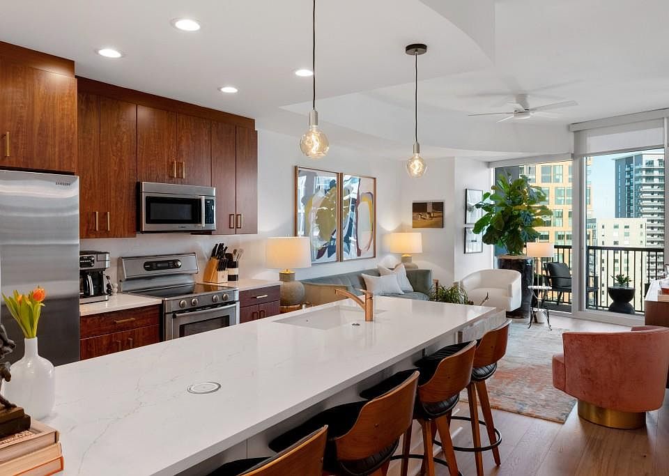 Motivated seller, moving out of state! Perched high on the 19th floor of Midtown's iconic 1010 building, this beautifully updated 1-bedroom residence delivers a front row seat to Atlanta's skyline. Floor-to-ceiling windows and a private balcony capture dramatic views down Peachtree Street - enjoy the evening light show on the Federal Reserve and the Bank of America tower. Inside, more than $25,000 in September/October 2025 upgrades elevate the space: new engineered hardwoods, sleek quartz countertops, modern sinks and fixtures, updated electrical switches/outlets, and designer ceiling fans and lighting. The open concept layout is both functional and elegant, with 10-foot ceilings, hardwood flooring, and wood cabinetry that are hallmarks of 1010 Midtown homes. A spa-inspired bath features frameless glass and stylish tile, while the bedroom offers generous closet space. The condominium is offered fully furnished, with curated art pieces available for purchase. Residents enjoy resort-style amenities rarely found in the heart of the city: controlled access, a 24-hour concierge, a skyline pool with cabanas and grilling area, a state-of-the-art fitness center, manicured Sky Park, and a club room with catering kitchen and terrace. Secure covered parking, high-speed elevators, and ground-floor retail/dining add convenience. Located on the Midtown Mile, 1010 Midtown is minutes from Piedmont Park, MARTA, and some of Atlanta's best restaurants, shops, and entertainment. This is a rare opportunity to own a fully updated, move-in ready home in one of Midtown's most sought-after addresses, combining stunning views, extensive upgrades, and world-class amenities for an unrivaled urban lifestyle.