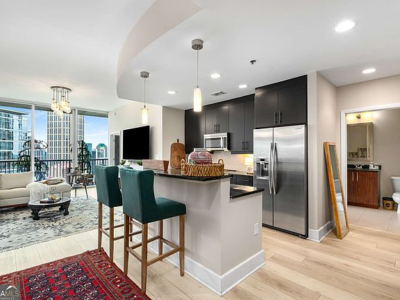 Welcome to bold, elevated living at 1080 Peachtree Street NE #1915-an ultra-stylish 1-bedroom, 1-bath condo perched on the 19th floor of the 1010 Midtown community, one of Midtown Atlanta's most iconic high-rises. With sweeping skyline views, floor-to-ceiling windows, and sleek upgrades throughout, this space delivers the perfect balance of design, functionality, and amazing location. The open-concept layout is made for modern city living-anchored by a streamlined kitchen with granite countertops, stainless steel appliances, and tons of storage. Freshly updated wide-plank flooring and contemporary lighting set a sophisticated tone, while the spacious living area flows seamlessly to your own private outdoor terrace above Peachtree Street. The bedroom is generously sized and connects to a spa-like bathroom with clean modern finishes. A large closet offers flexible storage to fit your lifestyle. The patio is 22 ft long! So much additional space to enjoy the sunsets from your living room! Patio faces W/ NW. Living at 1010 Midtown means access to next-level amenities: a rooftop saltwater pool, state-of-the-art fitness center, clubroom, outdoor kitchen and lounge spaces, and 24-hour concierge. The building is pet-friendly, and includes secured, assigned garage parking plus Google Fiber availability for high-speed connectivity. Located in the vibrant core of Midtown, you're surrounded by top-tier dining, arts, nightlife, and green space. Just moments from Piedmont Park, the BeltLine, Fox Theatre, Colony Square, and Atlanta's best restaurants and cultural hotspots. Major interstates and public transit are easily accessible, making commutes or weekend getaways effortless. If you're looking for luxury, energy, and location-all in one-this is it!