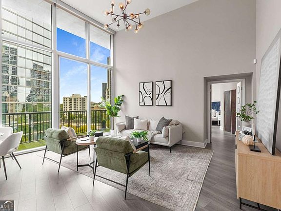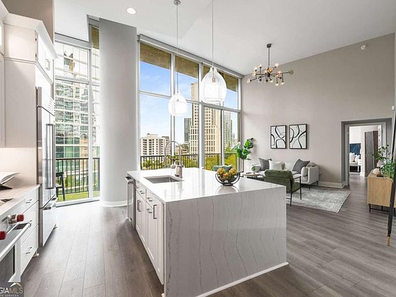 Rare. Irresistible. Won't last!! This is the moment to own one of Atlanta's most distinguished homes in the coveted 1010 Midtown. The only 3-bedroom residence currently available and one of just two homes that have this expansive floorplan. With soaring 15-foot ceilings, walls of glass, and a 65-foot wraparound balcony overlooking Peachtree Street, this modern marvel delivers extraordinary living overlooking the iconic Peachtree curve! An inviting foyer leads to a dramatic living and dining space that flows seamlessly into the chef's kitchen featuring a Wolf range, SubZero refrigerator, Viking convection oven and microwave, walk-in pantry, and a waterfall-edge quartzite island illuminated by designer pendants. Elegant custom cabinetry & fixtures, motorized solar shades and curated lighting deliver sophisticated and timeless appeal throughout. The generous & flexible 3-bedroom, 3-bath layout includes two stunning primary suites, one easily transformed into an alluring second living room with floor-to-ceiling skyline views framed by walls of glass-perfect for entertaining or unwinding in style. Each suite offers oversized custom closets and spa-inspired baths; one featuring a soaking tub tucked among window's edge overlooking the city, a special and luxurious retreat. The third bedroom provides even more versatility-ideal as a media room, guest suite, or home office. Additional highlights include new hardwood floors, custom laundry room shelving, and two prime, side-by-side parking spaces on the same level as the residence for effortless access. Enjoy world-class amenities-a resort-style pool, state-of-the-art fitness center with Pelotons, clubroom, and 24/7 concierge service-all within steps of the Atlanta Beltline, Piedmont Park, High Museum, Fox Theatre, Whole Foods, Publix, and Midtown's finest dining and nightlife. Be enveloped in beauty and feel the energy of the city surround you in wonder and awe- a truly breathtaking and inspiring fusion of design, scale, and luxury.