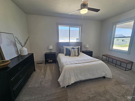 Discover the Payette floor plan by Bear Homes, located in the thoughtfully crafted Rose Pointe Subdivision. This spacious single-level home offers generous living areas plus a convenient pocket office—perfect for remote work or study. The deluxe kitchen is a showstopper, featuring stainless steel appliances, undermount sinks, an impressive walk-in pantry, and upgraded cabinetry with soft-close hinges and dovetail drawer construction. You'll find Quartz countertops in both the kitchen and bathrooms, along with luxury vinyl plank flooring throughout the entire home for a modern, cohesive look. The owner’s suite offers a peaceful retreat with a large walk-in closet and dual vanities. Architectural touches like 9-foot ceilings and hand-textured walls add sophistication and depth to every room. Unwind on the covered patio, ideal for entertaining or enjoying quiet evenings outdoors. Additional perks include front landscaping, and a double gate. Photo Similar