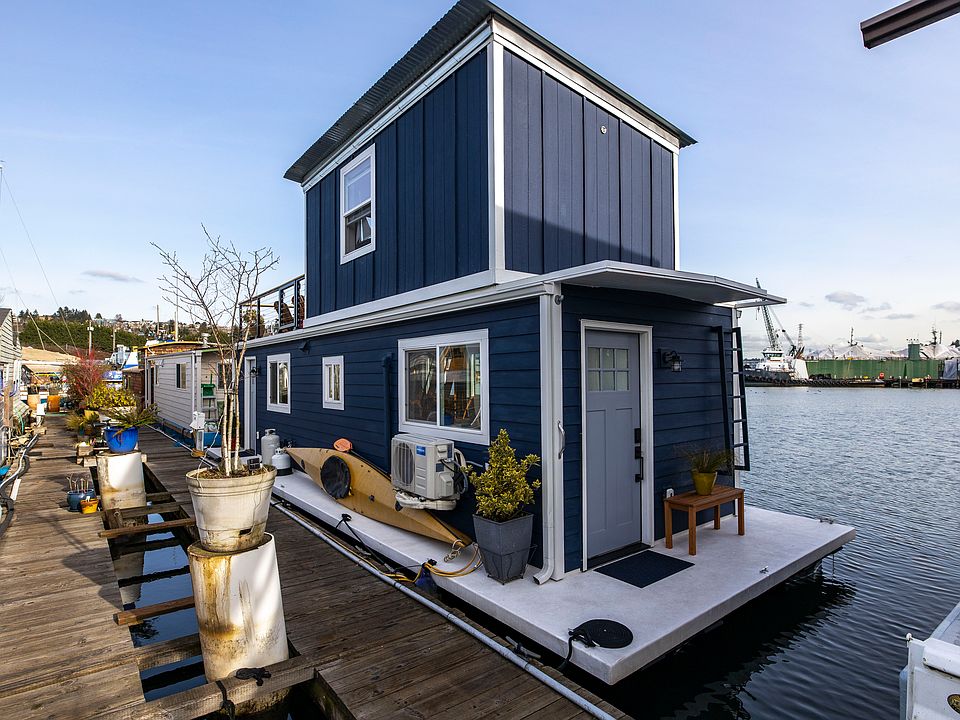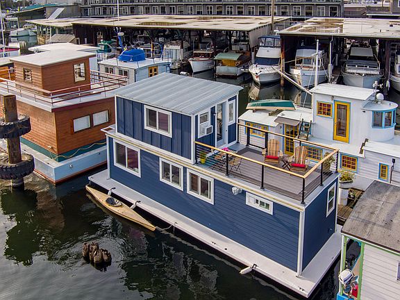 Escape the ordinary and find tranquility as you feel the gentle flow of water beneath you. This extraordinary houseboat is truly a respite from the daily grind. Recently remodeled and re-designed, this home includes so many great features such as oak laminate flooring, mini-split heat/AC, recessed lighting, new electrical & plumbing, and double paned windows. The modern kitchen comprises of quartz counters, large sink & an abundance of storage. The open concept lower level includes the living room, separate laundry area, spacious bathroom, dining nook, and even a space for an at home office space. The upper level offers a spacious bedroom with a custom closet and access to the expansive deck where you can enjoy the panoramic channel views.