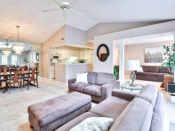 Gorgeous 2 bedroom 2 full bath condo in desirable Wittshire Glen pool/clubhouse community! Beautiful modern architecture inside this transitional open floor plan. Cathedral ceiling, sky light, ledges, and built-in bookcase! WB Fireplace and French doors walk out to deck/balcony. Breakfast bar, columns and mirrored wall in dining area. Main bedroom has lg walk-in closet, and double closets in the second bedroom. One car garage. Please leave offers open for 48hrs.