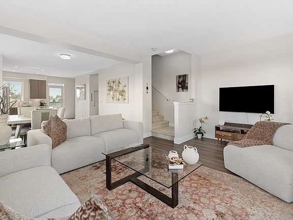 Jasmine at The Gardens is a luxury townhome community within a master-planned development by Townline, nestled beside a 12-acre natural park w/ water features + trails. This 1600+ sf,A/C townhome features 3 bdrms,2.5 baths,11ft ceilings,laminate floors,and a contemporary kitchen w/ premium Bosch appliances, offering a seamless indoor-outdoor flow to the patio. Upstairs feature 2 bright bdrms and a master suite w/in-floor heating. An extra parking stall complements the 2-car garage. Residents enjoy over 6,000 sf of amenities, including a state-of-the-art fitness centre and gymnasium. Conveniently located near Ironwood Plaza, Coppersmith Mall, and Riverport entertainment complex, w/easy access to major highways,Vancouver,YVR Airport, and the border via Hwy99.Balance 2/5/10 New Home Warranty.