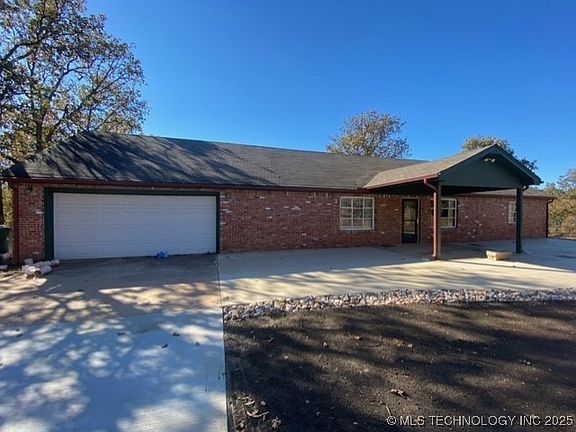 Ranch style full brick 3 bed, 2 bath, 2 car garage home on approximately 3 acres in Kellyville schools. Pond access. Great room living area w/ Fireplace. Inside Laundry with extra storage. Approximate 20-25 minute drive to downtown Tulsa. Vacant.