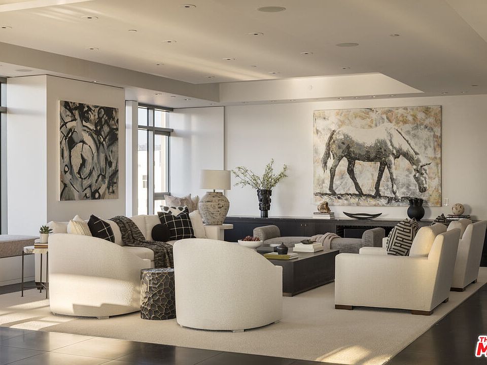 With private, direct elevator access, this spacious north-facing residence at the prestigious Californian offers a true sanctuary in the sky. Recently upgraded with new cabinetry, carpeting, and paint, this modern three-bedroom home blends clean contemporary design with timeless sophistication.Expansive floor-to-ceiling windows frame unobstructed city, mountain, and ocean views, while the open-concept living and dining areas are enhanced by a marble-lit bar perfect for elegant entertaining. The chef's kitchen features Miele appliances, a custom breakfast banquette, and a built-in television that discreetly retracts when not in use.The luxurious primary suite includes dual walk-in closets, two additional bath closets, and a spacious bathroom with separate soaking tub and shower. Four designated parking spaces are included, along with an optional separate maid's studio.Residents of The Californian enjoy world-class amenities including 24-hour concierge, valet, security, guest parking, doorman, and reception services offering the ultimate in comfort, privacy, and convenience.