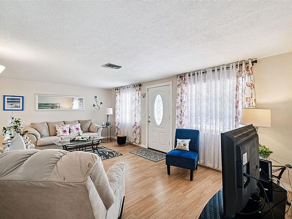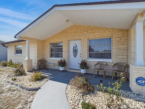 Discover comfort, convenience, and flexibility at 10801 Bethel Street—a charming 2-bedroom, 1.5-bath Port Richey home that’s clean, well-kept, and ready for its next owner. From the moment you arrive, the inviting covered front porch sets the tone, offering the perfect spot to relax with your morning coffee or enjoy the evening breeze. Inside, the home features a bright and functional layout with a cozy living area, a well-appointed kitchen with range, refrigerator, and built-in microwave, and two comfortable bedrooms. A standout feature is the enclosed flex room, fully connected to the home’s central AC—ideal as a home office, workout space, den, or creative studio. The oversized 1-car garage provides excellent storage and includes the washer, dryer, and a convenient half bath. Outside, the property sits on a standard neighborhood lot with charming landscaping in the front, off-street parking, and a yard that offers plenty of room to personalize with some TLC. Enjoy peace of mind with a 2018 AC system and a roof approximately 10 years old. With NO HOA, you’ll appreciate the freedom to make the home truly yours. Located minutes from everyday essentials, restaurants, and retail along US-19, and only 30 minutes from beaches, this home offers an ideal blend of comfort and lifestyle. Whether you’re a first-time buyer, downsizing, or searching for a low-maintenance home in a convenient location, this one is a must-see. Schedule your tour today!