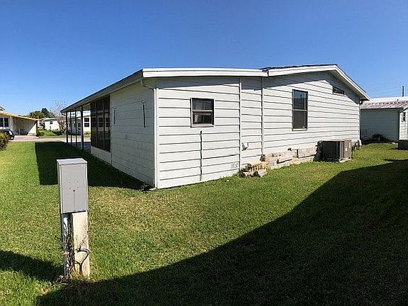 Park Approval Requires Income of $4,000 per month. 2 Bedroom - 2 Bath - 1056 sq ft - 1986 Spacious Mobile Home in the 55+ Community of Caribbean Estates. Monthly Fee is $700 per month and includes: trash, water, sewer, lawn, activities and amenities. One Car Covered Carport. Driveway Space for an extra vehicle. Two Screen Porches. Entry Door has a window/screen insert. As you enter from the carport your Kitchen is to the left and Dining Area to your right. Kitchen has a tall/deep 3 cabinet pantry. New Range. Refrigerator and Garbage Disposal. Plenty of Cabinet/Counter Space for the chef in the family. Eat in Counter. Window above sink. Dining Area has a built in lower cabinet/counter for storage. Beadboard Paneling with chair rail in main part of the home. Crown Molding. Ceiling Fans. Living Room is large with Windows and Entrance to your Screen Porch. Small built in cabinet/counter with Sunflower etched glass allows light from kitchen into living room. Screen Porch is perfect for sipping on your morning coffee or just a place to relax after a long day. You can access your carport by the Screen Door. The Second Screen Porch is off the carport and it houses your shed for extra storage. Back inside, the Main Bedroom is spacious with a walk in closet, huge En-suite Bathroom and Inside Laundry space. En-suite Bathroom has a double vanity sink with attached walk in shower/toilet room. Small Window. Hall Bath has a shower/tub combo with deep linen cabinet, vanity sink and wall hooks for robes/towels and small window above shower. Guest Bedroom is perfectly size with a walk in closet, large window and ceiling fan. Laminate Flooring throughout but may have to be replaced in areas. A/C unit is approx. 7yrs old but is not working, might just be needing coolant but should be checked out. Neutral Paint throughout. Sprinkler System. Gutters. Quiet Neighborhood. About the Park: Caribbean Estates is quiet and clean. Although tucked away, it is close to Stores, Restaurants, Churches, Medical facilities, Libraries, Fire and Police Departments. The Beach is just a stones throw away! Large well maintained Swimming Pool, Clubhouse offers many weekly/monthly activities such as cards, bingo, & pool tournaments. The "Social Club" hosts monthly breakfasts and dinners and all are welcome and encouraged to attend. Community has NO "pass through fees"! Park has a 2- 25lb pet limit and must be approved.