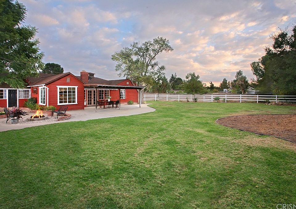 Charming rustic country ranch style home in Chatsworth! This gated single family property is a 3BD/2BA of 1,838 sqft that sits on almost a full acre of land with a beautiful koi pond. The family room has beautiful shiplap walls and high ceilings with a cozy brick fireplace, perfect for a gathering with loved ones or to simply have a relaxed evening. As you continue into the breakfast area, you will be greeted with beautiful, wide windows with a view of the gorgeous waterfalls in the koi pond. The rustic brick floors lead you to the open kitchen, with ample amounts of cabinets for storage, and plenty of counter top space. The spacious master bedroom has great natural lighting coming from the wall to wall window. An office space is also available with rustic brick flooring, huge windows, and beautiful French doors that lead you into the patio. Also available in this property is the laundry room, newer 5-ton AC, a circular driveway, and plenty of backyard space for RV parking. This property is great for peaceful living, to raise horses in the spacious lot, and to keep privacy away from the city noise. Nearby schools include Chatsworth Park Elementary School, Ernest Lawrence Middle School, and Chatsworth Charter High School. Built in 1938, this home boasts of character and charm, something that isn't easy to find today. Make this property yours to keep!