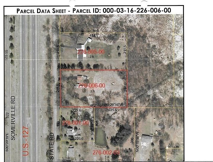 Nice 2 acre site with mature trees and shaded yard. Very close to US 127 highway access. 1964 mobile home and garage on property. Mobile home to be removed by seller. Value in land only. Estate owned; seller makes no representations, guarantees and/or warranties.