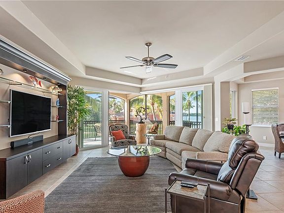 THE BEST FOR LESS!!! South facing with S & SW lake views. Model like beach front condo lives like a home with 2 car garage on the lake. Photographer asked if this was a model home! Move right in, TURNKEY FURNISHED! Updated Kitchen, 42" soft close cabinets. 20" diagonal tile t/o except BR's. Open floor plan with 3 distinct separate BR wings all with private baths and WI closets. Master suite with 2 WI closets soaker tub and walk in shower and French doors to the huge lanai overlooking the beach and lake. Over 680 sf of outdoor living on covered lanais. 10 Foot cofferd ceilings! Just a short walk along the beach to the incredible Miromar Beach Club amenities incl tennis and pickle ball. For your comfort all toilets have been replaced with 17"height & elongated bowls! Miromar Lakes is located in an incredibly convenient location 10 min to airport and 360 stores in 3 major malls with scores of restaurants nearby, Costco and 28 movie screens and still only 30 minutes to Naples and the Ft Myers River District. Enjoy water sports, fishing etc on our 750 acres of fresh water lakes with free boat docks available to Vivaldi residents!.