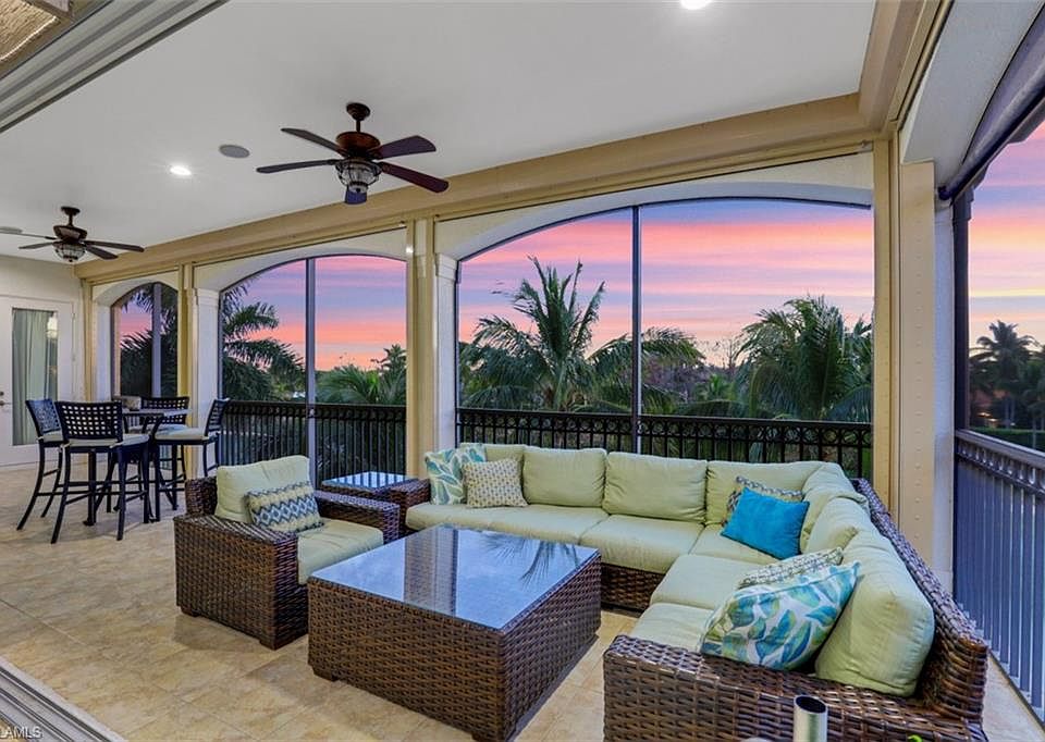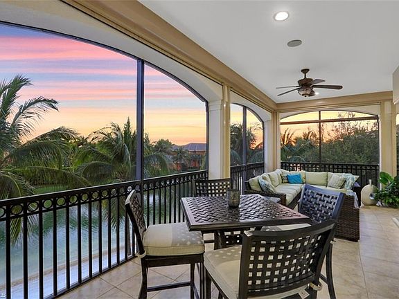 Beach Front! Beautiful extremely private and Serene views in Vivaldi at Miromar Lakes. This meticulously cared for penthouse condo with fantastic views overlooks the white sandy beaches on Lake Como. Extra large bedrooms en en-suites with open floor plan, updated large kitchen with granite counter tops and gas stove,newer 2020 Bosch Dishwasher, Outdoor kitchen with ice maker, grill and gas burner also sun shade and electric screen shutters, master has newer carpet 2020, all toilets were replace, hot water heater 2021, guest bathroom updated in 2020 and this home is being sold furnished. Miromar Lakes features 700 acres of fresh water lakes, with boating, fishing, swimming, water skiing, 3 miles of sand beaches, Caribbean style beach grill, club house, pool, full service spa, fitness center, equity golf, tennis and many other fantastic amenities. Miromar is just 10 minutes from Southwest International Airport and next to Florida Gulf Coast University with large shopping malls within minutes