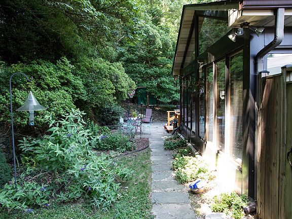 Perfect for nature lovers, this furnished mid-century modern 4BDR, 3BA sits at the end of a street right next to the Northwest Branch trail. Hardwood floors throughout first floor, exposed beams in the living room vaulted ceiling, a gorgeous, newly tiled sunroom, and deck & patio out back (hot tub not included). Giant windows line the front of the house, with a sunny kitchen and natural light in every room and ceiling fans in most rooms. In the winter, cozy up to the fireplace and enjoy movies on the flat screen TV. The kitchen features granite countertops, a gas stove, side-by-side fridge/freezer with ice maker and water filter, and a lovely window seat facing the ravine and woods from the front of the house. This home also includes a recently renovated garden level in-law suite with private entrance, kitchenette, built in desks for two, and a bathroom with shower. This home is 3 miles from both the Silver Spring and Forest Glen Metro Stations, walking distance to Forest Knolls ES and Forest Knolls community pool, North Four Corners Park, and close to Trader Joe's, Woodmoor shopping center, Safeway, etc.. Central AC, forced air heat. Gorgeous azaleas and daffodils abound in the spring. All utilities paid by tenant: water, gas, electric. Antenna TV with Roku set up included (3 flat-screen TVs). Tenant responsible for maintaining outdoor space (e.g. mowing lawn, maintaining hot tub). No sublets, no smoking. Street parking available in front of home. Lease includes furniture (king sized adjustable bed, single loft bed on main floor; queen and single trundle in in-law suite; 4th bedroom currently set up as home office). Application must apply through Zillow which includes: Credit report from identity verified applicants Background check (includes eviction & criminal record) Income & employment history Residence history & previous landlord contacts