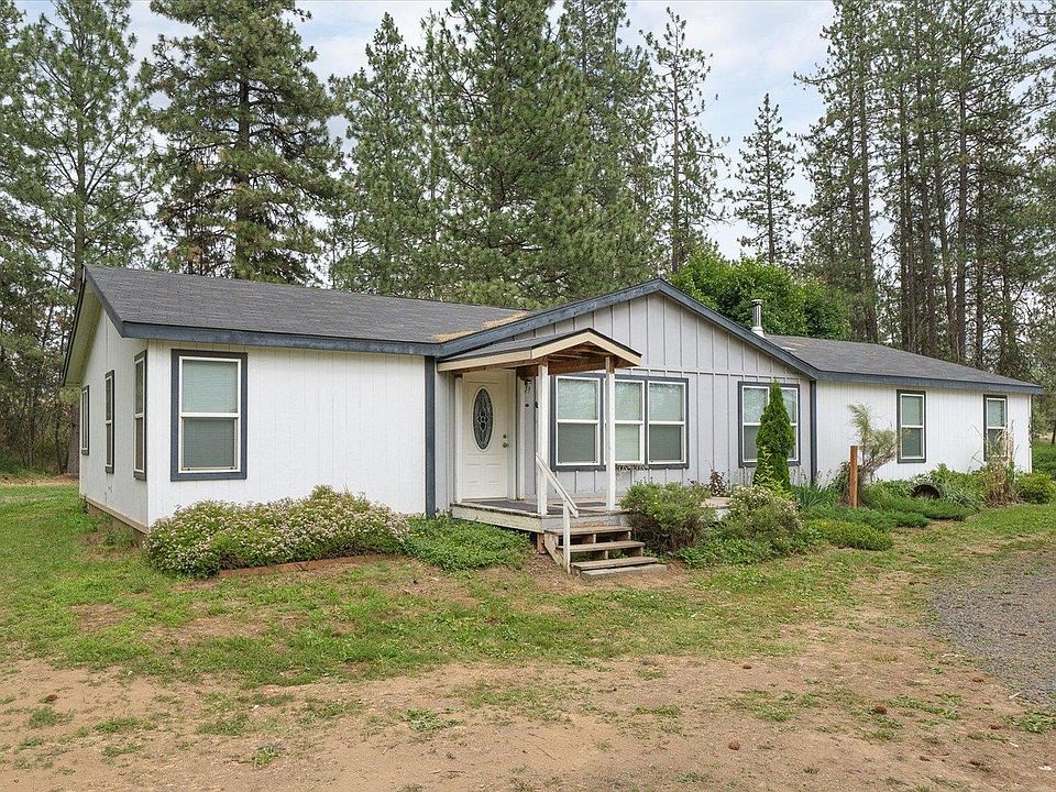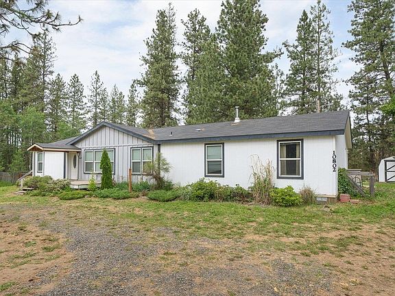 This 2011 build MH has 3 bedrooms + an office with a total of 2,130 sq ft! Huge great room with vaulted ceilings and additional family room with wood burning stove too. The kitchen is spacious with an oversized island, a generous pantry and huge skylight to bring all of that wonderful light into this space. The primary bedroom has a large walk-in closet and tons of cabinetry and storage in the bathroom. The garden bathtub will be a great spot to relax! Separate walk-in shower and toilet room too. All kitchen appliances included along with washer, dryer and additional refrigerator in the laundry room. The property is almost 10 acres, it has a few storage sheds, good parking and circled driveway. Lots of trees and rock outcroppings as well as garden area and only 30 min from Spokane!