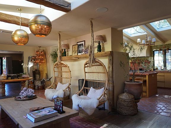 Just minutes from downtown Ojai, this private 1.21 acre knoll overlooks the valley, surrounded by orchards, ranches, and the quiet rhythm of the river. Thoughtfully reimagined, the property reflects the essence of Ojai, relaxed, natural, and beautifully connected to its surroundings. Two dwellings sit comfortably on the land, redesigned to flow together as one cohesive retreat. The main residence offers 3 bedrooms, 2 bathrooms, and 2,118 sq ft, while the second home provides 2 bedrooms, 1 bathroom, and an attached garage, ideal for guests, extended family, or a creative studio. Inside, refined craftsmanship and timeless materials create a sense of warmth and ease. Wide-plank white oak floors, Stars & Cross Saltillo tile, hand-troweled adobe walls, and a Venetian-plaster fireplace add depth and texture. Seven skylights fill the home with natural light, complemented by custom aluminum windows, solid oak doors, and a Vasari-plastered exterior for timeless charm.The kitchen serves as the heart of the home, blending beauty and function with marble countertops, custom white oak cabinetry, a Viking 8-burner cooktop, Fisher & Paykel refrigeration and wine columns, and a six-foot copper farmhouse sink. Modern upgrades include an 8.2 kW owned solar array with 10 kW battery backup, Tesla EV charger, Bosch HVAC, and whole-house water filtration, ensuring both sustainability and comfort. Outdoors, 35 fruit trees and mature oaks frame peaceful gardens and open spaces, creating an inviting environment for relaxation and connection. A rare Ojai retreat where craftsmanship, comfort, and nature come together in perfect balance.