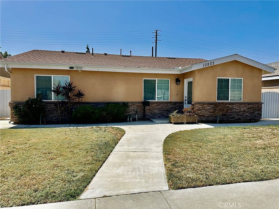 Newer single family home. Large single level home built on 2018 and construction completed on 2019. The house has residential fire sprinkler system. All 4 bedrooms are spacious, remodeled with newer 2 panel doors, large baseboards, newer flooring. Hall bathroom has a tub, decorative tile walls and durable shower sliding door. Master bathroom is gorgeous with oversized stand shower, decorative title wall and large double sliding frameless shower doors in stainless steel. The house interior had been freshly painted with the colors of the season. Durable SPC luxury vinyl plank flooring through all the house including the bedrooms floor. Open floor plan with multiple windows to create a bright and airy home. Easy to clean faux wood blinds on all windows. Double pane sliding windows with grilles. Inside house oversized laundry room with storage cabinets. No walls between living room and dining area to make the house look modern with an open interior. Proper number of recessed ceiling lights on living room, dining and kitchen ceilings. Beautiful kitchen open to dining area. White skater/recessed panel cabinets with modern cabinet pull hardware and soft close cabinet door hinges. New white subway tile kitchen backsplash. Closet converted to a useful pantry. Window on kitchen to allow you enjoy the back yard. Low maintenance back yard with no trees and cement flooring all around the house.Two car detached garage. Sliding metal gate next to garage. Epoxy floor in garage. Brand new tankless water heather. Large A/C unit. Easy access to 605 freeway and short distance to 5 freeway. Prime location, close to Downey to the South and Cerritos to the North. Shopping plazas, restaurants and business close by.