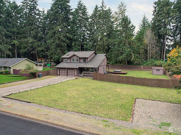 No hoa! Beautifully updated 4 bedroom 2.25 bath home sitting on .39 acre lot, fully fenced back yard, featuring a firepit, hot-tub, shed, large covered patio for entertaining. Elegant home feels inviting as you enter living room, dining room, kitchen with gas stove, large island, w granite counter tops. Family room has cozy wood burning fireplace (could convert to gas). Primary bedroom with en-suite bath. Heat pump with A/C , meticulously cared for home. RV parking. Excellent location near entertainment, restaurants. Sumner/Bonney lake school district. Must see to appreciate, welcome home