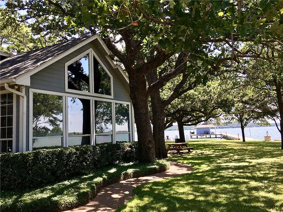 Exceptional Lake Front home on 1.49 acres! 113 feet of water frontage on main part of Eagle Mtn Lake in protected bay. Circular drive, beautifully shaded backyard with TREES GALORE. Enclosed boat house, electric lifts for boat and two jet skis. Roomy back porch, bulkhead and dock areas. Immaculate interior with lake view from kitchen, den and upstairs balcony. Spacious kitchen, den and game room. Perfect for families or large groups. A MUST SEE!