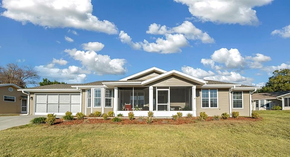 Charming 2-Bedroom Home with modern updates and ample storage! Welcome to your dream home! This updated 2-bedroom, 2-bathroom residence boasts style, functionality, and comfort. The screen enclosed front porch offers plenty of room for chairs and entertainment. The moment you step inside, you’ll notice the beautiful vinyl plank floors that flow seamlessly throughout, giving the home a modern and cohesive feel. The heart of the home is the bright and airy kitchen, featuring a brand new stainless refrigerator, a cozy breakfast nook w/ Plantation shutters, perfect for those morning coffee moments. There is a complimentary pantry cabinet that stays with the house. The open plan of the living room and dining room allow views of the front and back yards. Double doors lead into the spacious master bedroom, where you’ll find an en-suite bathroom with ample storage space. Both bathrooms have updated tile flooring. The additional den offers versatility, ideal as a home office, craft room, or extra lounging space. The plantation shutters add to the charm of this home. The same vinyl plank flooring can be found in the 408 sq ft enclosed sunroom which also features a generous storage area with sliding barn doors. This sunroom was added in ’17 with insulated roof and windows. The roof on the sunroom was recently resealed. Other improvements include new roof, AC and electrical panel in 2022. Fresh exterior paint. This home is move in ready. Located in beautiful Oak Run, a 55+ community with 6 pools (1 heated indoor), several clubhouses & activity centers, 2 fitness centers, a golf course and much more! Close to shopping, medical and restaurants it’s the perfect location to begin your new adventures.