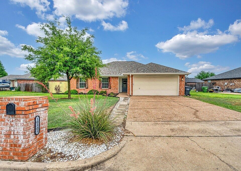 Tucked into a quiet street in China Spring, this beautifully maintained brick home offers thoughtful updates, flexible living space, and a backyard set up for easy Texas evenings. Inside, you’ll find wood-look tile throughout, crown molding, updated lighting, and an open-concept layout that keeps everyone connected. The kitchen is as stylish as it is functional with sleek quartz countertops that echo the look of marble, stainless steel appliances, a farm-style sink, and a pantry for all your kitchen essentials.