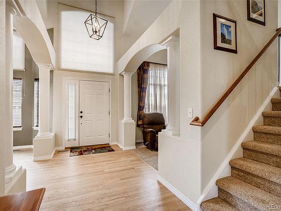 Stately Quail Creek home on a corner lot with its original owners. Natural light and space abound throughout and are accented by beautiful hardwood floors, 2 fireplaces, soaring vaulted ceilings, modern recessed lighting & updated light fixtures. An entertainer's dream, this home provides space to host both formal and informal gatherings. Elegant formal living and dining rooms off the foyer are perfect for more special occasions while the family room, kitchen & breakfast nook are ideal for everyday life. Sprawling kitchen offers a breakfast bar, abundant cabinet space, a pantry, double ovens, a gas cooktop & a built-in desk. A dedicated office with French doors, a convenient powder room & a laundry room with access to the 3-car garage complete the main floor. Updated open staircase leads to the 2nd floor that hosts a flexible loft space, another built-in desk, 2 additional bedrooms (1 with an en-suite bath and walk-in closet) & the primary suite. Impressive primary bedroom is sure to become your personal oasis thanks to double door entry, a gas 3-sided fireplace, a cathedral ceiling & a luxurious 5 piece bath with a jetted tub, an updated shower with 2 shower heads & a walk-in closet. 1300+ sqft unfinished basement provides options for storage, a home gym, or future living space. Situated on nearly 1/4 of an acre landscaped lot, this home has fantastic outdoor living space including a front porch, fenced side and backyard & an expansive patio. Wonderful location in a well-maintained and intimate subdivision moments from trails, parks, schools, The PACE Center & all the shopping and dining options found in downtown Parker. Conveniently located to Parker Rd, E-470 & just a few minutes to Southlands.