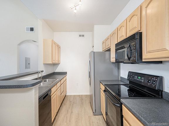 Welcome to 10805 South Twenty Mile Road #308, where urban convenience meets modern comfort! Nestled in the heart of Parker, this wonderful top floor, 2-bedroom, 2-bathroom condo offers a rare blend of prime location and desirable amenities. As you step inside, you're greeted by an inviting open layout and new flooring that seamlessly connects the living space to the kitchen area. Since this is a top floor unit you have no neighbors above you, but you will have vaulted 14' ceilings in the living room and master bedroom while abundant windows flood the area with natural light, creating an airy ambiance perfect for both relaxation and entertaining. The kitchen, equipped with updated appliances and tastefully designed cabinets, sets the stage for culinary adventures. The generous bedrooms provide cozy retreats, with the primary room boasting vaulted ceilings, remote ceiling fan, and a huge walk-in closet. Both bathrooms have a tub, but the master includes an oversized soaking tub for your convenience. To top it off, you will have a laundry closet which includes a washer and dryer, a private garage space with a large storage self-included. The grounds do include access to a fitness center, pool/hot tub and a clubhouse that is available to rent for the big game or any social gathering! Additional features are a 3-year-old water heater, dishwasher and fridge 3 months old, RIGHT off the cherry creek trail, 10-minute bike ride to downtown parker, and the roofs were replaced in 2023. Schedule a showing today and welcome home.