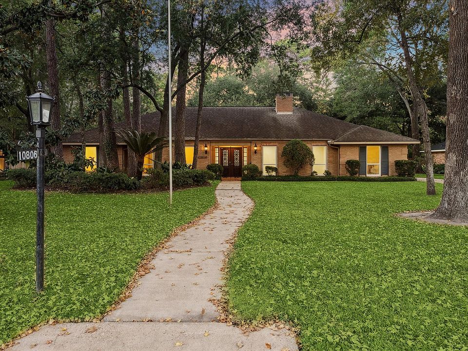 Tucked away on a picturesque cul-de-sac in the heart of Hunters Creek, this charming turn-key ready 4-bedroom, 3-bath ranch-style home sits on over half an acre surrounded by mature oak trees and lush landscaping. The bright, 2019* remodeled kitchen opens to spacious living areas with soaring, vaulted 14' ceilings, while the renovated bathrooms blend comfort and style. Hardwood floors flow throughout the home giving it a cozy and refined feel. Offering an exceptional layout and serene outdoor setting, this home is zoned to top-rated SBISD schools and is conveniently close to premier private schools, shopping, and dining. *per seller