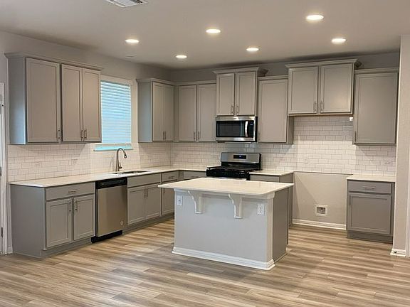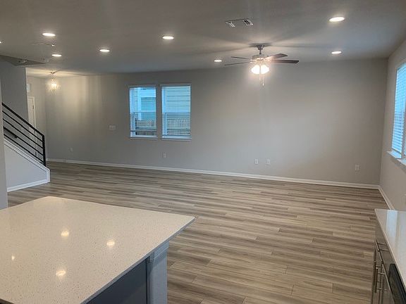 This home features 42" Birch Slate color cabinets throughout, Metro Ice Quartz kitchen countertops and beautiful island, with White Glossy 3x6 Subway Tile kitchen backsplash complimented with a Grey grout. The luxury plank "Polaris" flooring throughout the Living, dining and kitchen area really compliments the interior design scheme! Structural upgrades include modern Horizontal Railings, a secondary sink in the Owners bathroom, and a Covered Patio! Vistas of Austin also features an amenity center with a playground and pool with a brand new dog park. Located in AISD. Tax rate is 2.18%.