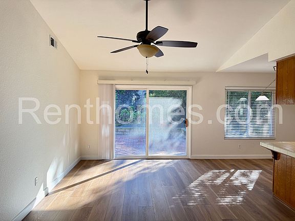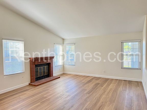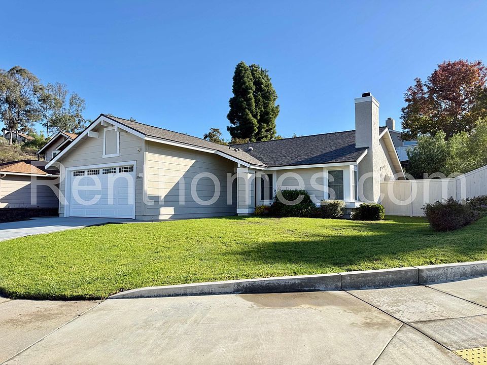 Welcome to 10807 Woodstream Pt, a charming corner lot home nestled in the heart of Scripps Ranch, San Diego, CA. This single-level house, built in 1986, boasts three spacious bedrooms and two full bathrooms. The home features a cozy fireplace, central heat and air conditioning, and ceiling fans with light fixtures, ensuring comfort in all seasons. The faux wood luxury vinyl plank floors add a touch of elegance to the space. The kitchen is equipped with modern amenities including a microwave, refrigerator, dishwasher, and an electric stove. The house also offers full-size washer and dryer hookups for your convenience. The property comes with a two-car garage with an automatic opener, providing ample space for your vehicles. The large brick patio and fenced yard are perfect for outdoor activities, and the automatic sprinklers keep the yard lush and green. The gardener is included, so you can enjoy the beautiful outdoors without the maintenance. Pets are considered, making this a welcoming home for all. The house is fitted with dual pane windows, offering energy efficiency and noise reduction. With vaulted ceilings adding to the spacious feel, this home is a perfect blend of comfort and style.