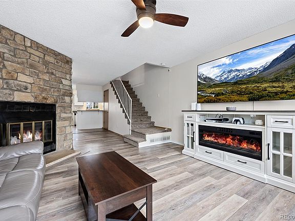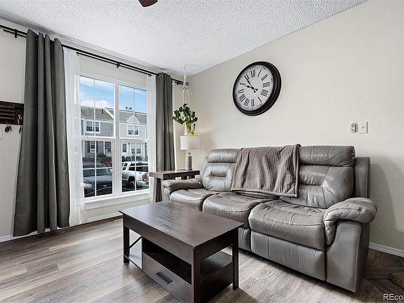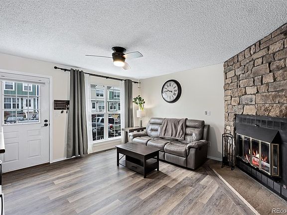 Desirable end unit townhome in prime Parker location--Just a 2 block walk and you're on Mainstreet in Old Town (downtown) Parker where you can dine, shop, go to the library and the adjacent Discovery Park with its outdoor splashpad, ice skating (in winter months) and free summer concerts, or even pamper yourself with the great selection of local businesses. Take in a show or take a class at the Parker Arts and Cultural Center, or enjoy the outdoors on Sulphur Gulch Trail. About 3 blocks away is the lovely O'Brien Park and the H2O'Brien pool with waterslides and water features. This location offers easy access to Parker Road & E470, with I25 nearby. This unit features a private, fenced patio/yard with new concrete backing to a large greenbelt area. Inside, you'll find LVP flooring, a kitchen with stainless steel appliances and slab granite counters, a dining or office area, a living room with a cozy stone wood-burning fireplace that creates a warming atmosphere on those chilly nights, and a large closet with access to a huge storage area. This townhome also offers a convenient 1/2 bath on the main level (very few units have this feature). The primary bedroom is large and features a vaulted ceiling, dual closets, and direct access to a full bathroom. The secondary bedroom is also spacious. The upper level also includes a stackable washer/dryer (included in the sale) and another large storage closet. Reserved parking spot #10808. The HOA has a community pool and two community gardens, and the dues include exterior upkeep, from roof and grounds maintenance to snow removal and trash/recycling services. Enjoy this low-maintenance lifestyle, allowing you more time to relax, play, and/or find pleasure in all that Parker has to offer.