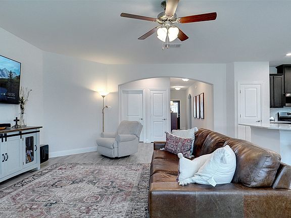 OPEN HOUSE 2-4pm on Sunday 9-14! Nice curb appeal with stone accent front and attractive raised stone landscape accent bed. This better than new, light & bright full brick home located on a quiet interior street just a short walk to park and pool and school in popular Silverado community. Entertain in a totally private backyard with concrete patio extension and space for swing set and trampoline. Extensive LVP floors everywhere except 3 carpeted bedrooms, nice living room with accent fireplace wall, open eat in kitchen with pantry, gas range, LED can lights & attractive stained cabinets contrasting with white quartz breakfast bar and ample countertops. Split spacious master suite with WI closet, tub & separate shower, stained cabinets contrast with dual sink white vanity Secondary bedroom accommodates adult size queen bed. Small country hometown feel with welcoming neighbors and minutes away from Main street, HWY 377 and HWY 380, grocery store, restaurants & entertainment.