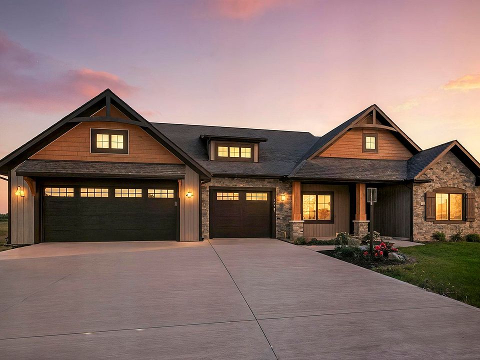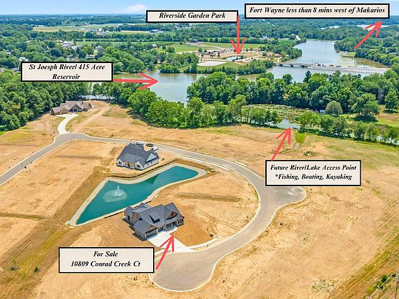 Open House SUNDAY 1–4 PM- Makarios Place is more than just a neighborhood, it's a true 415-acre LAKEFRONT recreational community, connected to the St. Joe River! Just 8 minutes east of Leo Crossing lies an upscale enclave where modern elegance meets timeless serenity. Named after the Greek word for “blessed,” this lakeside sanctuary offers access to the St. Joseph River & Leo Reservoir, perfect for boating, kayaking, & quiet escapes into nature—yet is just minutes from coffee shops, boutiques, pizza parlors, & even community pickleball courts. Star Homes by Delagrange & Richhart, forging a legacy of craftsmanship since 1960, unveils its maiden luxury offering in Makarios: The Cedar Summit, a French-inspired triumph of design & drama spanning 2,787 sq ft. The exterior sets a regal tone: triple gables with noir cedar accents, stained limestone pillars, a welcoming veranda, exquisite stonework, & French cottage shutters. Enter through grand double glass doors into a barrel-vaulted foyer crowned by a chandelier, flanked by arched entries leading to a stately office & ensuite guest quarters. The Great Room dazzles with 10’ stained double-beam ceilings, triple Andersen windows with transoms, and a floor-to-ceiling stone fireplace, one of two curated showpieces in this home. The chef’s kitchen delivers both form & function with nimbus-stained ceiling-height cabinetry, Italian stone backsplash, under-cabinet lighting, 8’ quartz island, integrated microwave, gas range, & hidden pantry. A bespoke dry bar/breakfast buffet links the kitchen to the vaulted dining room, where a 3rd chandelier & floating solid-wood shelves add understated flair. Open the custom glass doors to an all-season sunroom overlooking the shimmering pond, crowned by a tongue-&-groove vaulted ceiling & brass pinwheel chandelier. The covered outdoor living space, anchored by a second fireplace, features vaulted ceilings, multiple seating zones, & direct access to your owner’s suite, wrapped in Thunder Grey elegance with double crown molding. Indulge in the spa-like bath with quartz vanities, bespoke lighting, & a 10’ fully tiled shower, bathed in natural light from a high transom. A custom walk-in closet, luxe laundry suite with Tarragon cabinetry, and bonus upper-level retreat (complete with full bath and walk-in closet) add even more flexibility. The 851 sq ft 3-car garage, designer drop zone, dramatic dark brass hardware, & landscaped grounds round out this showstopper. Outbuildings allowed!