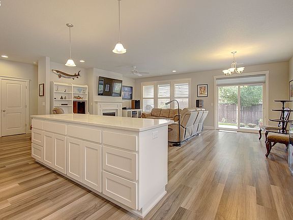 Welcome to an exceptional home with the open-concept floor plan. This home feautures a spacious great room with a gas fireplace and an open dining area. The kitchen has elegant quartz countertops, stainless steel appliances with a gas stove, an amazingly oversized walk-in pantry with a built-in cabinet....butlers pantry style. The home is decked out with impressive plantation style shutters, luxury vinyl planking, single hand faucets, 1 piece toilets, tile floors in the primary bathroom and 9 foot ceilings. All 3 bedrooms have cozy carpet, plantation shutters and ample closet space. The home is equipped with a tankless water heater and energy-efficient systems. The front driveway is oversized to fit more guests. The beautiful backyard has a covered back patio, raised flower beds, plumbed for a gas barbeque and a tool shed. This home is located in such a beautiful neighborhood with nearby parks. Low HOA fee of $77 a month covers front yard maintenance, the park and management fees.