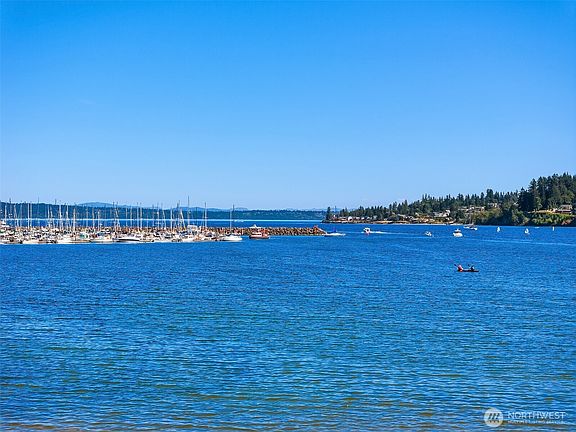 Tucked into downtown Kingston, this private waterfront estate offers 160' of sandy, no-bank beachfront on a rare .93 acre lot. Breathtaking views of Puget Sound, the Cascades, & the marina from nearly every room. Water-level entertaining area w/ wet bar, workout studio, mudroom & 2 guest suites. Upper great room w/ stone fireplace opens to a massive deck perfect for summer gatherings. The kitchen features bar seating, stainless appliances, & stunning views. Unwind in a primary suite w/ deck access, 2 walk-in closets & ensuite bath. Landscaped grounds include a natural creek, sprawling lawns, manicured gardens + easy access to the waterfront for kayaking & crabbing. Extraordinary setting w/ birds, seals, deer. Two blocks to ferry and shops!