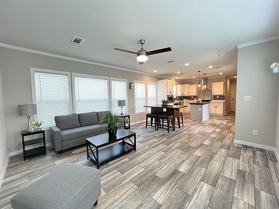 Open concept floor plan featuring high ceilings with fans and crown molding. Spacious island kitchen has farm sink & stainless-steel appliances. Large bedrooms with walk in closets. 10x10 storage shed. Landscape package included and 10x10 storage shed. Home is located in highly desirable neighborhood close to amenities, great schools HEB ISD, and major highways. Harston Woods Community is ideally located in the center of the Dallas-Fort Worth metroplex, convenient to shopping malls, Six Flags, DFW airport, Great Wolf Lodge, Texas Rangers Ballpark and AT&T Stadium Home of the Dallas Cowboys! Harston Woods is a land-lease community. Monthly lot rental fees are $660 for standard lots and $695 for premium lots. License # MHDRET36197. Call 817-540-2000 for more information. (z). Price is subject to change without notice and not guaranteed.