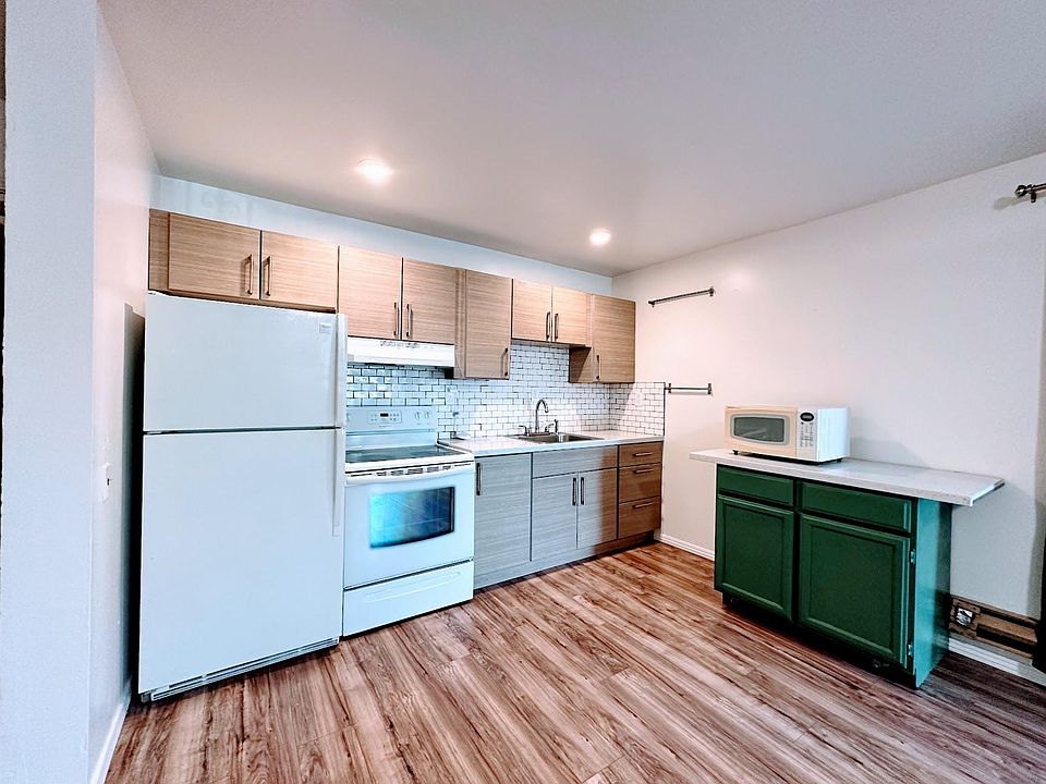 Open floor conceptNew paintLaminate floorUpdated bathroomHeating unit in room
