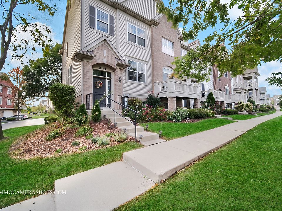 Over 2200 sq ft of gorgeous living space. This beautiful end unit sits on a premium lot overlooking wetlands & acres of open space. Open floorplan with light & bright decor, 9ft ceilings and beautiful cherry floors throughout. Lots of windows flood the home with natural light. This is an entertainer's dream. An open foyer welcomes you home. The unit features a sun-drenched 2 story family room that will hold all of your guests. The kitchen offers plenty of 42' cabinets and granite counters. It features stainless appliances and a prep island with seating. Next to the kitchen is a dinette/breakfast area. Down the hall is a large master suite with a big walk-in closet and private bath. Upstairs features 2 more good-sized bedrooms and large guest bath. There is also an open loft that can be used as a study or home office. A large laundry area with full sized washer and dryer completes the 2nd floor. The lower level features a large rec room/4th bedroom and tons of storage. This unit offers dual balconies in front and in back. It's well maintained inside & out. Newer furnace, AC, washer, dryer and more. Fountains at Town Center is one of Carol Stream's most popular complexes featuring its own convenience stores and restaurants. Near everything you need. Walk to trails, parks, playgrounds and popular park district rec center. Fast closing too. Hurry, this one won't last.