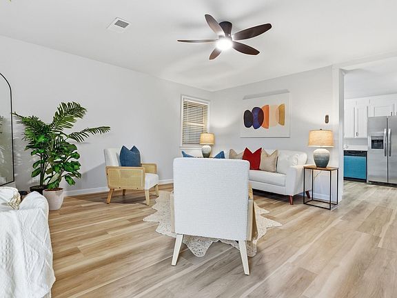 Two-car carportNew siding and fasciaLvp flooringSpacious front and backyardNew roofKitchen showcases quartz countertopsNew interior doors