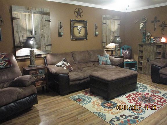 RUSTIC COUNTRY FAB...With 3 bedrooms 1, bath. Remodeled kitchen, with updated appliances( added pantry) pallet wall, Fireplace with gas Logs. New wood flooring in Living room, hallway and Kitchen. Bathroom is tile. Repainted all rooms and added crown molding in the Living Room.added 2-car garage work shop 24 x 36 with workshop area.. Put Storm Shelter in ($10,000) Lovely country view!!