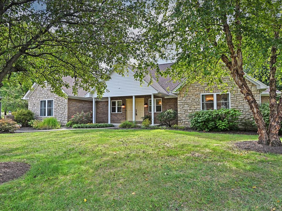 Tucked on a cul-de-sac in Fosters Pointe, this expanded 4 BR, 4-full BA ranch provides a bright, versatile layout. Family rm. w/fireplace, built-ins + walkout to covered patio. 1st-floor primary bedroom suite has dual walk-in closets, large bath, walkout + adj. study. Private loft suite w/full bath. Spacious laundry incl. washer + dryer. Expansive unfinished basement ready for your ideas. Front porch, new professional landscaping + rear patio w/wooded views. HOA incl. pool, play area, and clubhouse.