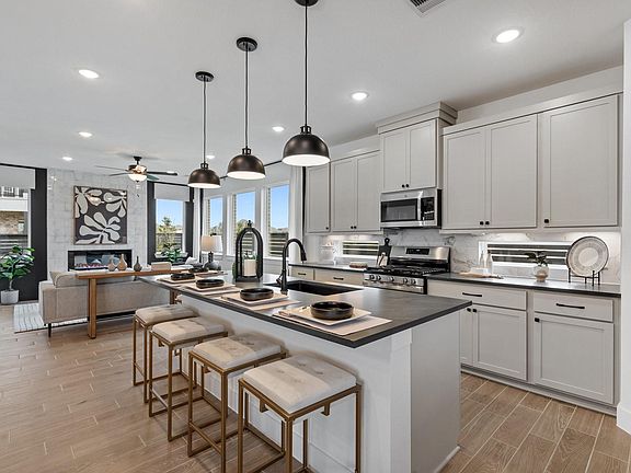 Modern fireplaceImpressive walk-in closetExpansive quartz island kitchenWide-open spacesFully sodded yardSpa-inspired bathroomPremium landscaping package