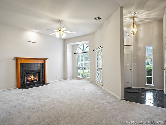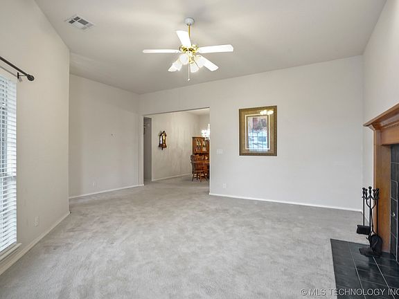 GREAT PRICE in BIXBY SCHOOLS! Back on the market at no fault of the Seller! Two Living, both w/Fireplaces & Gas Logs. Front Window makes a great spot for Desk/Office Area! Open Kitchen w/Island & Built-in Pantry. Split plan has Master Suite tucked away in the back with Large Bath, 2 Closets + Linen Closet, Whirlpool Tub & Separate Shower. Nice sized 2nd & 3rd Bedrooms w/Walk-ins. Large Patio and Dog Run. Overlooks tree farm. Great Location!