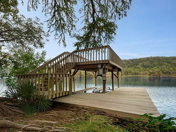 Nestled on nearly an acre with 100 +/- feet of waterfront on Lake Austin, this charming home offers the perfect lakeside retreat in an exclusive, private community of just 15 homes. Residents share access to several acres of common area, including a private harbor and lakeside park, providing a peaceful setting for relaxation. Just minutes away, Commons Ford Ranch Park offers hiking trails and additional lake access, while the home’s prime location between The Village at Westlake and The Galleria ensures easy access to shopping and dining. The home’s two-story design makes it ideal for both large gatherings and intimate getaways. Expansive balconies on both levels offer sweeping lake views, with nearly every room taking in the serene waterscape. The open floor plan includes spacious living, dining, and kitchen areas, plus entrances on each floor for added flexibility. The lower level opens to a covered terrace that leads out to the lawn and lakefront, offering an inviting space for entertaining or quiet moments by the water. Designed by renowned architect Andrew Logan, the home showcases a perfect blend of Texas-rustic charm and sophisticated craftsmanship. Beautiful stacked-stone fireplaces, natural wood and stone floors, and intricate ironwork create a warm, inviting atmosphere. The master suite offers a tranquil retreat with lake views, a private covered porch, and a luxurious travertine-clad bath with a large walk-in closet. Additional features include a spacious utility room and ample storage, ensuring comfort and convenience throughout the home.