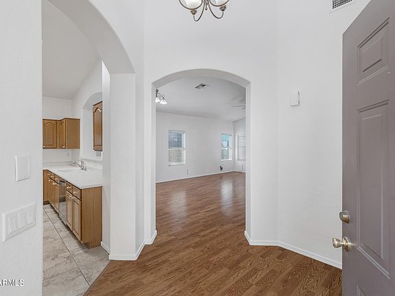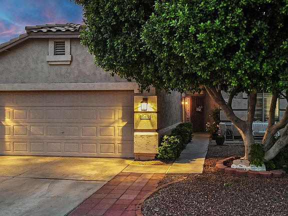 ***NEW PAINT, NEW CARPET, AND NEW CEILING FANS just installed and completed!!! Located 1 mile from Starbucks, Costco, the Gateway Shopping Pavilions, and 6 short miles from State Farm Stadium, Top Golf, the Amazing Via Resort, Westgate Entertainment District, Spring Training Baseball Stadiums, and Cabelas. Beautiful Lakefront home in the highly sought after neighborhood of Crystal Gardens! Featuring 1,870sqft, 3 bedrooms, 2 bathrooms, office/den/4th bedroom, and a 2-car garage; this open floorpan also features neutral tile and laminate wood flooring and vaulted ceilings. The master bedroom is very spacious with views of the lake and the amazing Arizona Sunsets. Step into the Master Bathroom and you will find the dual vanity, walk in shower, and a separate bathtub. The newer AC keeps this home cool and efficient while