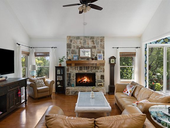 A True Family Paradise Where Luxury Meets Comfort! Nestled among a canopy of mature oaks in the coveted Spicewood Estates neighborhood, this extensively renovated home seamlessly blends sophisticated updates with the natural beauty of the Texas Hill Country. Originally built in 1984 and thoughtfully expanded with a second-story addition in 2018, this residence has been transformed into a modern sanctuary that celebrates both indoor elegance and outdoor living. The main floor features a spacious living room with a wood-burning fireplace and newer double-paned windows. The modern kitchen boasts an eat-in breakfast nook, large island, stainless steel appliances, and serene views of mature oak trees. A dedicated dining room, separate laundry room, two children's bedrooms, and a full bath complete the main level. Upstairs is the newly added wing of the house, completed in 2018 and featuring a serene master suite with a sitting area overlooking the treetops, en-suite bath, walk-in closet, and private balcony with canyon views. An expansive hallway leads to a private office, fourth bedroom with soaring ceilings, and a fantastic media room perfect for family movie nights! Another balcony off the media room offers stunning canyon views—ideal for taking in the Texas Hill Country sunset. The outdoor space is an entertainer's dream, featuring a large pool and outdoor kitchen completed in 2022, an expansive patio, and flat grassy yard space perfect for kicking a soccer ball—all shaded by a canopy of majestic oak trees. Zoned to top-rated Round Rock Schools and featuring convenient updates such as newer HVAC and a roof replaced less than one year ago, all you need to bring is your toothbrush!