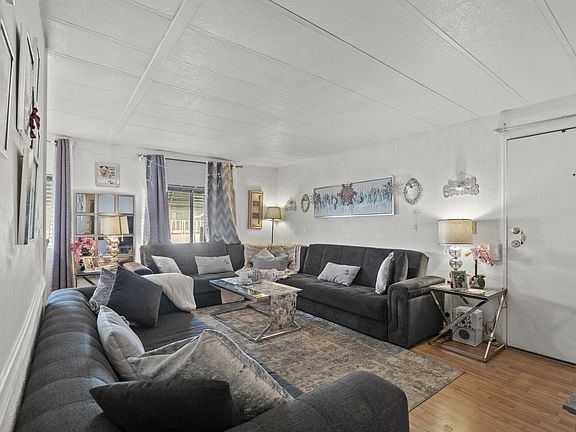 A perfectly comfortable and spacious home residing within the Golden Triangle Park of historic Mission Hills! This cozy 800-sqft home enjoys an inviting entry that opens into the bright adjoined living room and dining area that's perfect for entertaining. The user-friendly layout of the kitchen offers a walk-in pantry plus access to the separate utility/laundry room with lots of storage. Additional, find the upgraded primary bedroom and bathroom, and a relaxing guest bedroom. Additional features throughout include central air & heat, ceiling fans, laminate flooring throughout, a covered porch, and an attached carport with room for 2-car tandem parking with an extra storage shed behind carport. Such a well-maintained mobile home that is ready for a new owner! Located nearby Target, Rite Aid, Vons, local parks, schools, restaurants, and easy access to the 118, 405, and 5 Freeways!