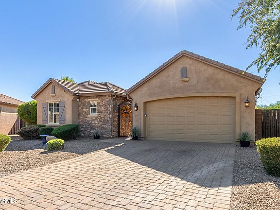 Situated on a premium 1/4-acre north/south lot, this East Valley home offers space, privacy, and true indoor-outdoor living. The open split great-room floor plan features diagonal-set tile, plantation shutters, vaulted ceilings, and a 3-panel sliding door that opens to the backyard. The upgraded kitchen includes a large island with breakfast bar, granite slab counters, glass tile backsplash, stainless-steel appliances, gas cooktop, double ovens, and a walk-in pantry—ideal for everyday living & entertaining. The owner's suite provides a quiet retreat with an updated bath, granite counters, double sinks, & a spacious walk-in closet. Oversized secondary bedrooms create flexible options for guests, home office, or multi-generational living. Step outside to a resort-style backyard designed... for year-round enjoyment. Features include a covered patio with speakers, extended paver patio, heated and cooled pebble-tec pool with water feature and in-ground cleaning system, outdoor kitchen with bar seating, outdoor fireplace and TV setup, firepit sitting area, and a large grass yard for play or pets. Additional highlights include a 3-car garage, RV gate, and excellent north/south exposure for energy efficiency. This home delivers luxury, usable space, and the Arizona outdoor lifestyle buyers search for.