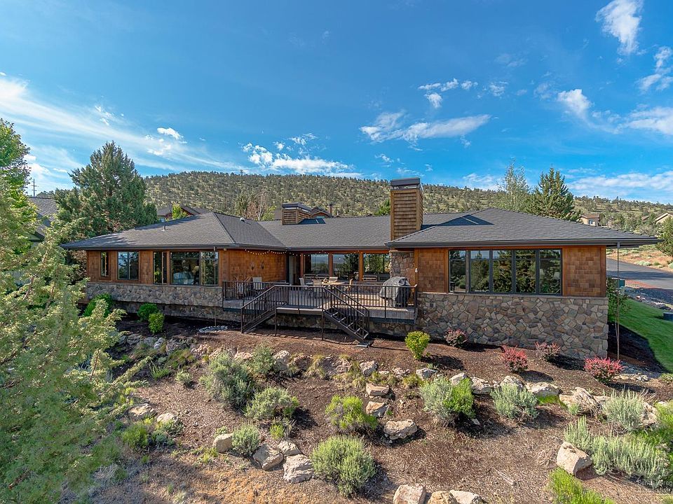 Gorgeous custom home with expansive views of the Cascades, Smith Rock and other neighboring Buttes. Exceptional craftsmanship and brilliant single level design with a bathroom for every bedroom. Great room plan features stone fireplace surround and hearth, built-in entertainment center, tray ceiling with wood accents, wood wrapped windows and trim, and solid core doors. Entertainer's dream kitchen equipped with high-end stainless appliances, 6 burner dual fuel range, two garbage disposals, prep island, built-in desk, and custom wet-bar and breakfast bar. Luxurious primary suite with a spacious bedroom, large walk-in dual shower, soaking tub, and walk-in closet with built-ins. Enjoy the paver deck oasis with an outdoor wood fireplace, beautiful iron railings and stunning views in all directions. Live the resort life and enjoy all Eagle Crest amenities!